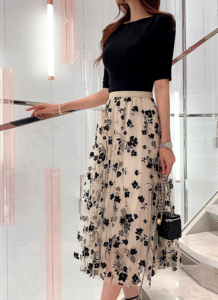 ウエストゴムフラワーチュールスカート